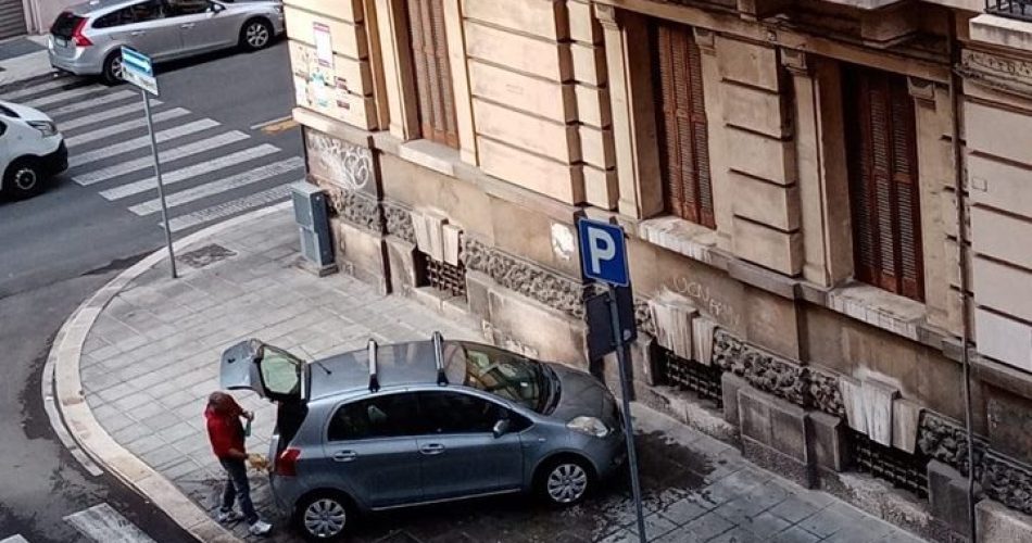 A Bari le auto si lavano sui marciapiedi: la foto denuncia nella zona Umbertina