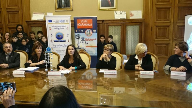 BARI – Sarà Bari ad ospitare l’ottava edizione delle gare nazionali di robotica “Robocup jr Italia”, in programma alla Fiera del Levante, dal 27 al 30 aprile. Centocinquanta squadre si sfideranno per quattro giorni a colpi di rescue, theatre, dance e soccer, ospiti dell’Istituto “Japigia1 – Verga”, prima al Sud ad aver organizzato RobocupJr Italia.rnrnL’evento barese è sostenuto da Comune, Regione Puglia, Camera di Commercio e aziende locali e nazionali. Per far fronte alle spese è stata attivata anche una piattaforma di crowdfunding.rnrn“L’amministrazione – ha esordito l’assessora all’Istruzione, Paola Romano – appoggia questa iniziativa con entusiasmo perché rappresenta una grande opportunità per Bari in quanto, avere in città millecinquecento ragazzi che si interessano di robotica e che la utilizzano non solo come metodo didattico, ma anche come veicolo di trasmissione delle conoscenze e possibilità di vivere la scuola come un’esperienza performante, apre orizzonti inimmaginabili per le giovani generazioni e per l’intera comunità. È la prima volta che una città del Mezzogiorno ospita un evento del genere, circostanza che ha richiesto un notevole impegno -prosegue Romano – e una stretta collaborazione con Regione, Camera di Commercio, Ufficio scolastico regionale e con i privati che hanno aderito all’invito. Il prossimo obiettivo è di rendere l’intera Puglia un polo avanzato della robotica educativa”.rnrn“Questa iniziativa – ha dichiarato l’assessore regionale allo Sviluppo economico, Loredana Capone – dimostra che la Regione ha deciso da tempo di investire seriamente sull’innovazione. Nel caso specifico, RobocupJr riunisce diverse competenze in una democrazia nuova, nel segno della conoscenza di nuovi codici e di nuove modalità di apprendimento che migliorano notevolmente l’approccio alla tecnologia”.rnrnAlla conferenza di presentazione dell’evento, hanno partecipato anche Anna Cammalleri, direttrice dell’Ufficio scolastico regionale, Angela Partipilo, segretario generale della Camera di Commercio e i dirigenti della Japigia – Verga, Patrizia Rossini, e della Galileo Ferraris di Vercelli, Giovanni Marciano. “La scuola Verga – ha ricordato la dirigente Patrizia Rossini – è impegnata nella robotica ormai da cinque anni: abbiamo iniziato quasi per scherzo quando, alcuni anni fa a Napoli, fui invitata a presentare un progetto di e-learning da noi realizzato. Da allora non ci siamo più fermati, nonostante la carenza di fondi che ci ha spinto a chiedere aiuto al territorio. La nostra perseveranza è stata premiata, il nostro progetto è stato approvato dal Ministero, e adesso siamo qui”.
