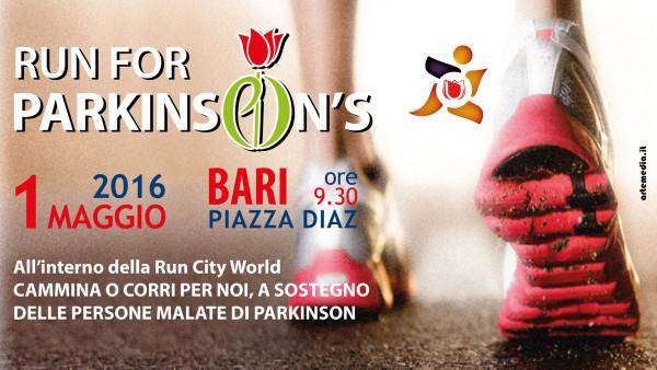 La malattia di Parkinson non è solo e sempre tremore ma anche lentezza, rigidità, disturbi del sonno, depressione, disfagia, disartria, disturbi sessuali e comportamentali, la malattia di Parkinson non colpisce solo gli anziani ma anche i giovani sulla malattia di Parkinson si fa poca informazione, ad oggi ancora non si conoscono quanti siano i malati di Parkinson in Puglia e in Italia.rnrnPer questo motivo si corre la Run4Parkinson’s, dalle ore 9.30, l’1 maggio a Bari, per far comprendere la realtà di questa malattia e quanto sia in aumento affinché anche la ricerca scientifica possa aumentare.rnrnSi può partecipare come runner, preparato a correre per la 10 o 4 Km. non competitive, oppure si potrà simbolicamente correre e camminare.rnInfo e iscrizioni presso la sede dell’Associazione Parkinson Puglia Onlus sita in Via San Tommaso D’Aquino 9 C – Bar i, nei giorni: martedì – giovedì – sabato dalle ore 17.00 alle ore 19:30 da martedì 12 – a giovedì 28 aprile.rnrnL’associazione Parkinson Puglia onlus destinerà i fondi raccolti alla realizzazione di un progetto riabilitativo, alternativo tipo Yoga o Tai Chi Chuan a beneficio dei soci malati di Parkinson.