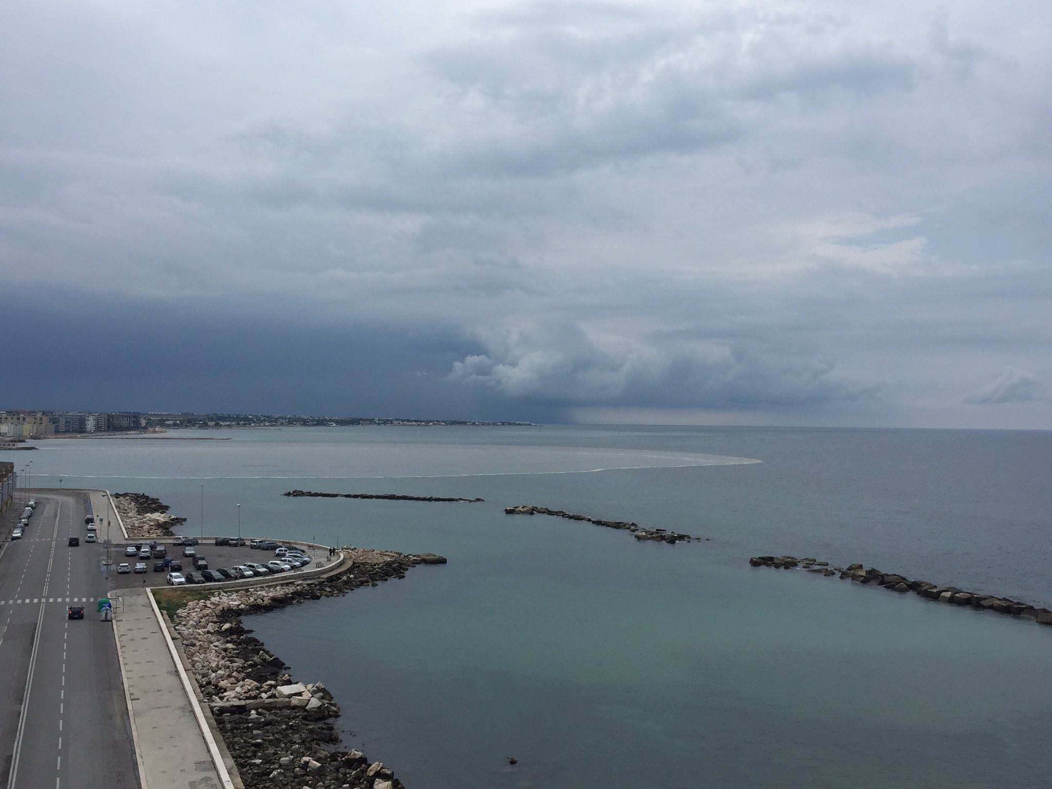 Nella foto scattata e inviata su Twitter un’enorme macchia in mare, sul lungomare nord all’altezza della spiaggia di San Francesco. Si è formata alla fine del nubifragio che ha colpito la città, probabilmente causata dalle correnti o da qualche sversamento della fogna. Una simile macchia si presenta sempre in prossimità della condotta Matteotti, sul lungomare Nazario Sauro.