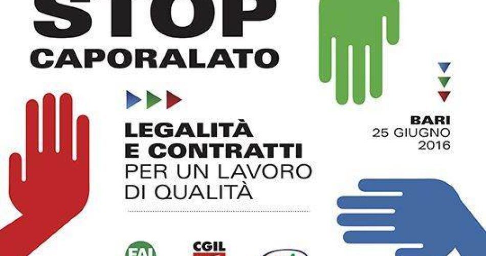 rnrnIn corteo sabato saranno 10mila gli operai agricoli e i braccianti che parteciperanno alla manifestazione “Stop al caporalato”, indetta da Fai-Cisl, Flai-Cgil e Uila-Uil per dire no al caporalato, allo sfruttamento del lavoro in agricoltura e per il rinnovo dei contratti provinciali di lavoro. I lavoratori agricoli aderiranno allo sciopero generale regionale di 8 ore nella stessa giornata. I dettagli della iniziativa sono stati presentati in conferenza stampa dai segretari regionali della Uila, Pietro Buongiorno, della Fai, Paolo Frascella, e della Flai, Giuseppe Deleonardis. Il corteo partirà alle 9,30 da piazza Massari e raggiungerà piazza Fiume, dove si svolgerà il comizio finale dei segretari generali di Fai, Flai e Uila, Luigi Sbarra, Ivana Galli e Stefano Mantegazza.rnrn