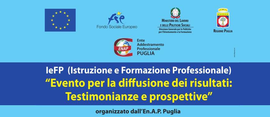 L’ En.A.P. Puglia, a conclusione delle Attività Formative legate ai corsi per l’assolvimento dell’Obbligo Formativo, organizza un convegno il prossimo giovedì 30 giugno.rnrnAlle ore 17,30 presso la Sala Conferenze “Beatrice Romita” sita al Comando di Polizia Municipale della Città di Modugno, Via Giuseppe Maranda – 52, ci sarà questo momento di incontro e confronto voluto per diffondere le attività realizzate e i risultati raggiunti.rnrnUn momento di condivisione che coinvolgerà gli allievi, le famiglie, i dirigenti scolastici, gli imprenditori, le associazioni datoriali e tutte le agenzie formative ENAP Puglia.rnrnSaranno presenti il Prof. Leo – Assessore Regione Puglia alla Formazione e Lavoro, Politiche per il Lavoro, Diritto alla studio, Scuola, Università e Formazione Professionale; il Dott. Nunziante – Vice Presidente della Giunta Regionale Pugliese, la Dirigente Sezione Formazione Professionale Regione Puglia; la Responsabile dell’IeFP Regione Puglia; gli Allievi e le Famiglie; i Rappresentanti del Sistema Scolastico, Sociale ed Economico.rnrnA fine convegno ci sarà un buffet preparato dagli allievi e offerto dalle aziende che ospitano gli stessi in stage.