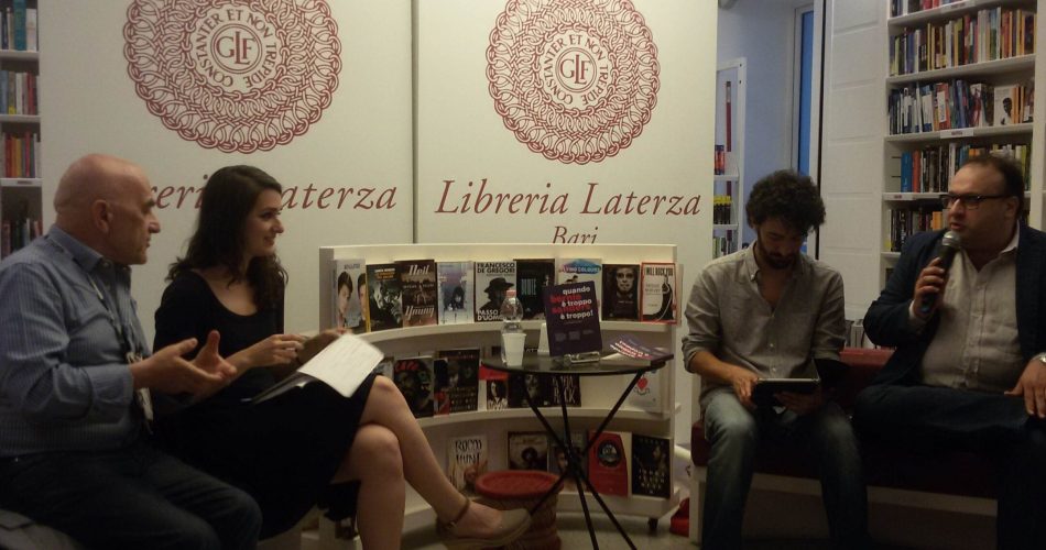 BARI – Un pomeriggio di dibattito e analisi politica alla libreria Laterza, attraverso la parabola di Bernie Sanders, mosca bianca della politica americana. Cogliendo l’occasione della presentazione del libro “Quando è troppo è troppo!” della giovane dottoressa in filosofia politica Rosa Fioravanti sono intervenuti Claudio Riccio (Sinistra Italiana) e Nicola Colaianni (professore di diritto ecclesiastico e presidente del comitato barese del No al referendum costituzionale) moderati da Nico Lorusso.