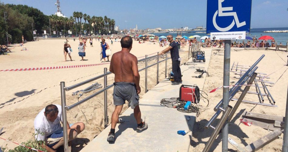 “Questi lavori rientrano nell’idea che il mare e la spiaggia, due degli elementi più importanti della nostra città, debbano essere accessibili a tutti”, spiega l’assessore ai Lavori pubblici Giuseppe Galasso.” “Grazie alla consulenza – prosegue – del consigliere delegato all’accessibilità Marco Livrea, stiamo elaborando il “Peba”, il piano delle barriere architettoniche, per rendere, un passo alla volta, Bari accessibile a tutti. Vista la contingenza della stagione estiva stiamo realizzando interventi sui luoghi pubblici maggiormente frequentati in questi mesi: piazze, giardini e spiagge pubbliche. Le passerelle per l’accesso al mare sono il sostegno più importante per tanti cittadini diversamente abili che in questo modo possono raggiungere il mare in sicurezza e godere della bella stagione”.