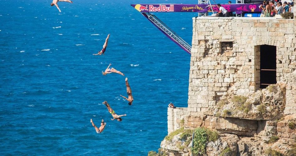 Ventidue atleti da 11 paesi in tutto il mondo e un trampolino a 27 metri d’altezza. Sono questi i numeri della tappa di Polignano del Red Bull cliff diving, la gara internazionale di tuffi da scogliere. Questo pomeriggio dalle 15.50 i tuffatori e le tuffatrici si lanceranno da Lama Monachile, per cercare di aggiudicarsi il primo posto nella quinta tappa della World series. E non si tratta della prima volta che viene ospitata a Polignano: il Red Bull cliff diving ha scelto il borgo a picco sul mare come location di una tappa ufficiale già nel 2009, nel 2010 e nel 2015.