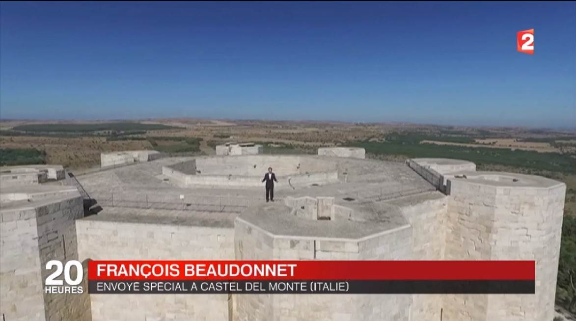 In prima serata, il telegiornale delle 20 di “France 2”, il più importante canale televisivo pubblico francese, ha mandato in onda un apposito servizio dall’Italia sul mistero di Castel del Monte. Il reportage dell’inviato, François Beaudonnet, contempla la storia del maniero di Federico II e introduce le innovative ricerche condotte nel Politecnico di Bari.rnrn