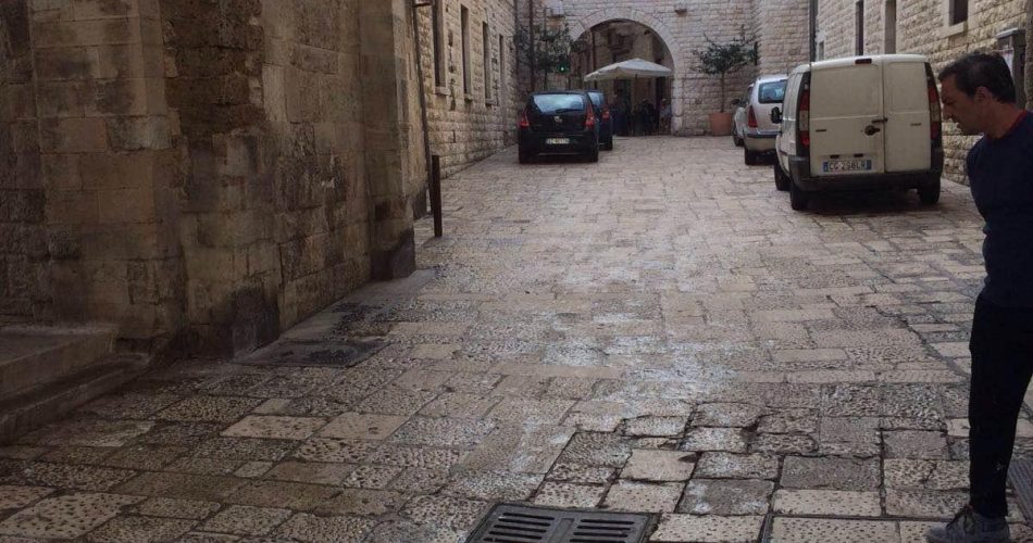 “Sia in via Napoli sia in viale di Maratona – dichiara l’assessore – vi sono dei pozzi in grado di raccogliere l’acqua ed evitare allagamenti grazie a un sistema che ne consente la dispersione sottoterra. Quei pozzi al momento sembrano intasati e ostruiti da rifiuti e detriti. Abbiamo disposto un’immediata attività di spurgo e di pulizia, partita questa mattina, in modo tale da ripristinare la funzionalità dei pozzetti. In questo modo sarà possibile evitare che si ricreino allagamenti e disservizi nella zona circostante. Per quanto riguarda la Basilica di San Nicola – conclude – fortunatamente ieri non è stata oggetto di allagamenti, anche se è nuovamente verificato un modesto ristagno d’acqua”. Il settore tecnico della ripartizione effettuerà nelle prossime ore un’accurata pulizia dei due pozzetti, collocati all’ingresso della Basilica, proprio per verificare se quella condotta, che fino alla scorsa settimana non aveva mai creato problemi così evidenti di deflusso delle acque piovane, possa essere ripristinata.