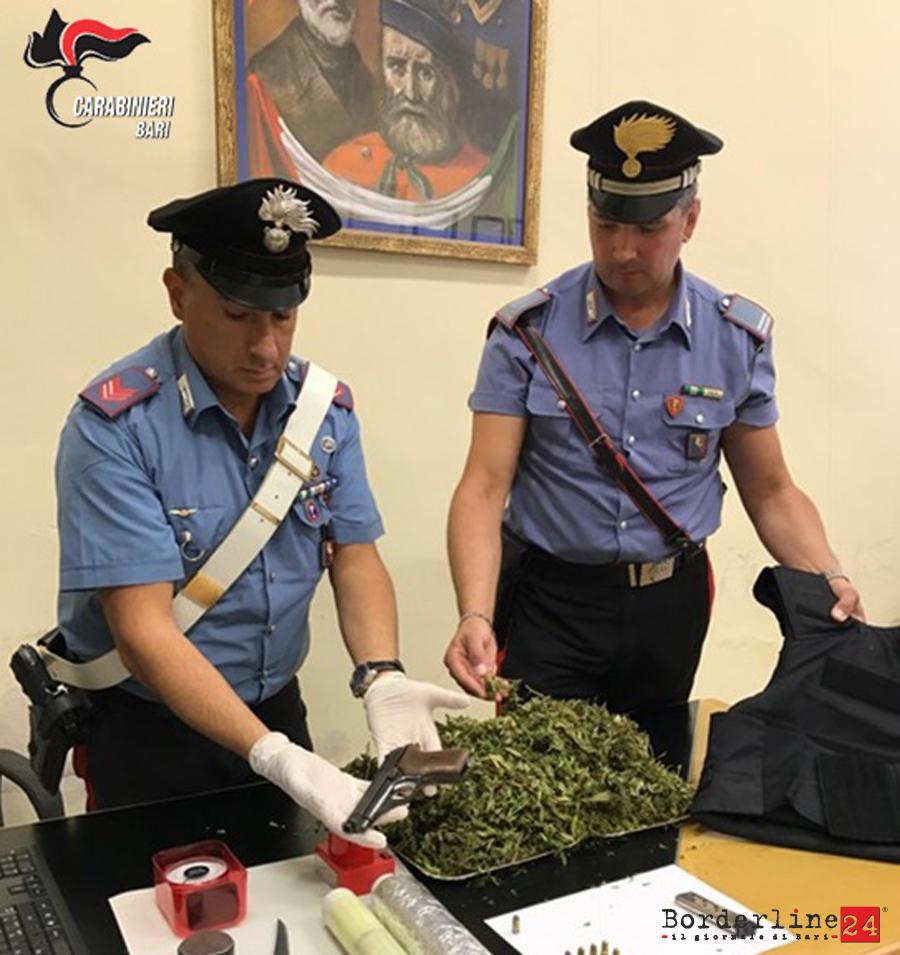 Continua, senza tregua, la caccia da parte dei carabinieri alle armi da fuoco che circolano in città. Dopo l’inseguimento della scorsa settimana, che ha fatto saltare fuori dalla cintola dei pantaloni di un 17enne, un’arma semiautomatica pronta a sparare, questa volta l’attenzione dei militari si è spostata su un barese domiciliato sul lungomare Di Cagno Abbrescia, trovato con una pistola con colpo in canna e cane armato, oltre un chilo di marijuana e un giubbotto antiproiettile.rnrnLe manette sono scattate ai polsi di Marco Barone, 28enne, arrestato con l’accusa di detenzione abusiva di arma comune da sparo, ricettazione e detenzione ai fini di spaccio di stupefacenti. L’operazione – in collaborazione con le unità cinofile del capoluogo – è scattata ieri quando i militari si sono presentati nella dimora del pregiudicato per un controllo. Il giovane quindi ha tentato di disfarsi di una busta, contenente marijuana, lanciandola dalla finestra. Entrati nella sua abitazione, gli investigatori hanno trovato una pistola Tanfoglio mod. GT 32 cal. 7,65, con colpo in canna e un cane armato, oltre a un caricatore contenente 5 colpi.rnrnIl ritrovamento di un giubbotto antiproiettile, conferma l’ipotesi che il pregiudicato fosse pronto a fare fuoco. Nel corso della perquisizione i carabinieri hanno rinvenuto altro stupefacente in casa e nel water, sette colpi cal. 7,65 nel sifone del lavandino. La pistola, su cui seguiranno accertamenti atti a verificare se la stessa sia stata usata o meno nei recenti fatti di sangue avvenuti in città, è risultata essere oggetto di furto perpetrata nel quartiere barese San Paolo nel maggio del 2013. Lo stupefacente, più di un chilo, la pistola, il relativo munizionamento e il giubbotto antiproiettile sono stati sequestrati.rnrn