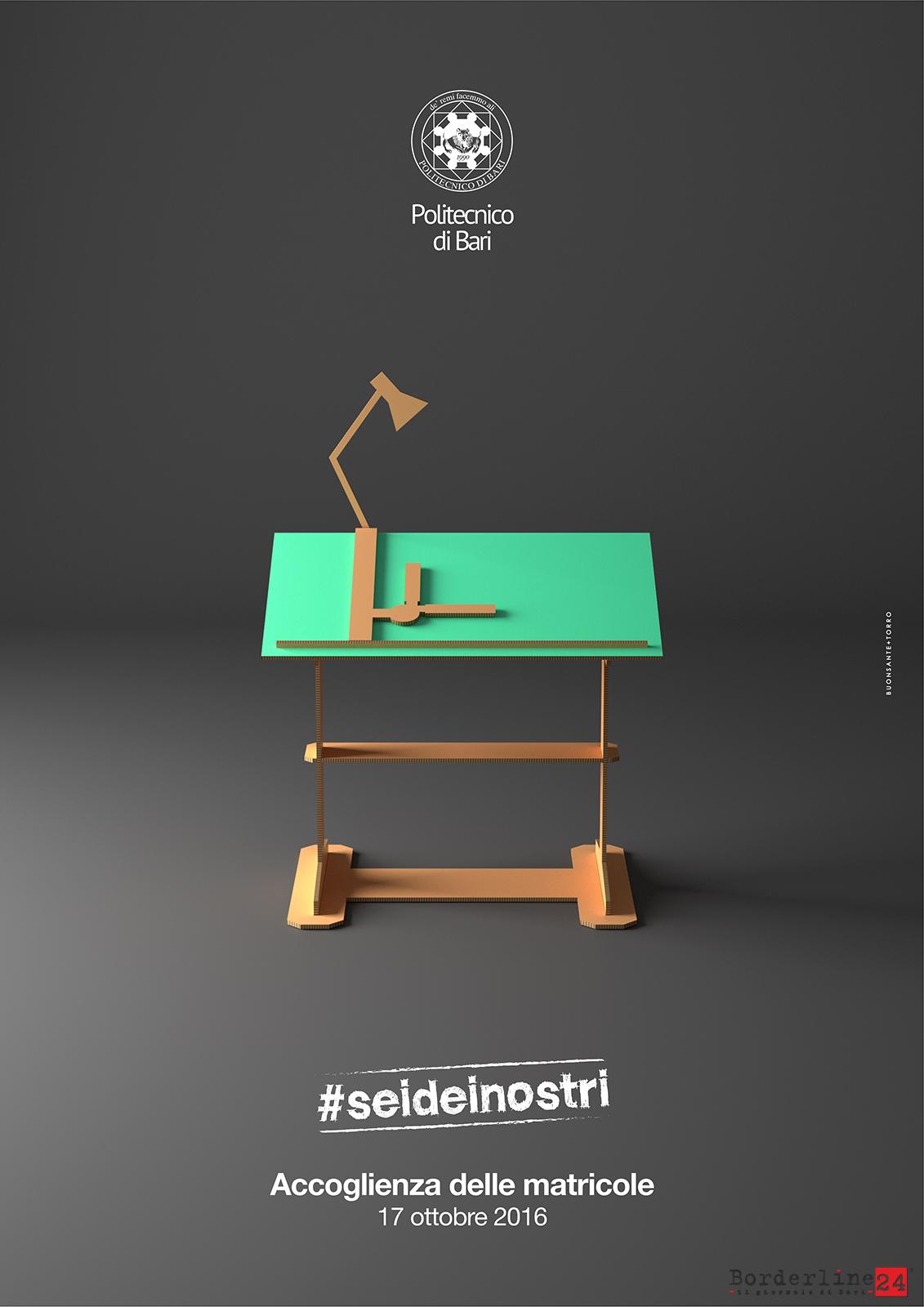 Lunedì, 17 ottobre, sarà un giorno di festa nel campus universitario di Bari. Il Rettore, Eugenio Di Sciascio incontrerà, per il saluto di benvenuto, le matricole del Politecnico di Bari che da quest’anno accademico 2016-2017 fanno parte a pieno titolo della comunità accademica dell’ateneo pugliese. Oltre 2000 (le cifre non sono ancora definitive per le procedure amministrative d’immatricolazione tuttora corso), sono gli studenti che dopo aver superato una apposita selezione di ammissione, affronteranno gli studi di ingegneria e architettura: Studi ritenuti impegnativi, ma che, dicono le statistiche, se portati a compimento, offrono elevate opportunità occupazionali.rnrn“Sei dei Nostri” è lo slogan dell’iniziativa che accoglierà, parallelamente, in un più opportuno, “Sarai dei nostri” anche gli studenti di quarto e quinto anno di diverse scuole superiori di Bari e provincia per una giornata di orientamento alla scelta universitaria e alle opportunità che il Politecnico di Bari ha messo in campo.rnrnIl programma della giornata prevede:rnrnOre 9:00, Campus universitario, Aula Magna Architettura, Saluto del Rettore agli studenti delle scuole superiori. Seguirà in questa aula la giornata di orientamento dedicata alle scuole superiori a cura dei docenti del Politecnico.rnrn rnrnOre 10:00, Campus Universitario, Aula Magna “Attilio Alto”rnrnIl Rettore incontrerà e saluterà le matricole del Politecnico. Nell’occasione consegnerà il sigillo del Poliba al primo laureato di Architettura, arch. Vito Cascione e alla prima laureata di Ingegneria, ing. Cinzia De Monte. Contestualmente, il sigillo, sarà consegnato al figlio del primo laureato in Ingegneria a Bari (1949), prof. Giuseppe Abbrescia.rnrnSeguirà, ore 10:45, presso il Museo della Fotografia, l’inaugurazione della mostra “Gli strumenti topografici dall’Unità d’Italia ad Oggi”. Alle ore 11:00, nell’atrio coperto “Claudio Cherubini”, sarà messo a disposizione del pubblico un percorso informativo sulle opportunità e servizi del Politecnico. La chiusura della manifestazione è prevista alle ore 13:00.rnrn