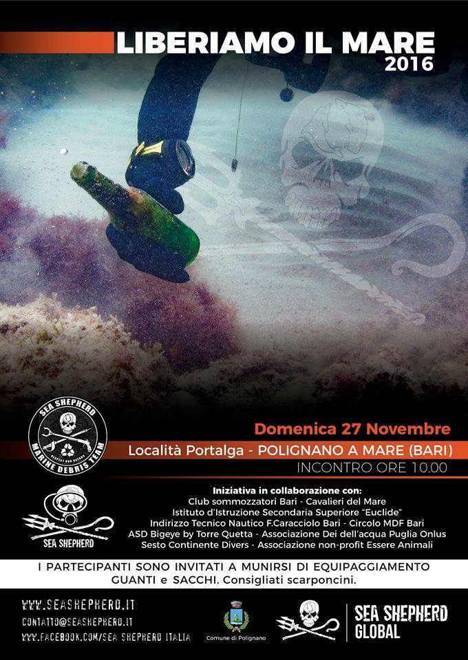 Le spiagge e i fondali marini a Polignano sono pieni di rifiuti, perciò è stato creato “Ripuliamo il mare”, una pulizia straordinaria a cui domenica 27 novembre parteciperanno anche i cittadini. A lanciare l’iniziativa è “Sea Shepherd”, un’organizzazione per la tutela degli oceani e della fauna marina.rnrnA rispondere all’appello sono state non solo con il Comune della città a picco sul mare e tante associazioni sul territorio – tra cui il Club sommozzatori Bari, Asd Bigeye e l’associazione Dei dell’acqua Puglia Onlus -, ma anche gli istituti baresi Euclide e Caracciolo.rnrnL’inizio delle operazioni di pulizia è previsto alle 10 nella località Portalga di Polignano. Ai partecipanti è richiesto di portare guanti e sacchi.