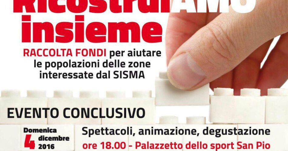 rnTale manifestazione sarà realizzata con l’apporto di alcune associazioni del territorio a chiusura di una rassegna di eventi realizzati dalle stesse nei mesi di ottobre e novembre. La finalità di questo spettacolo conclusivo, e dei predetti eventi, è quella di una raccolta fondi per aiutare le popolazioni del centro Italia colpite dai recenti sismi. Oltre ai gruppi di volontariato e culturali del territorio, interverranno anche personaggi dello spettacolo e dello sport barese e regionale.