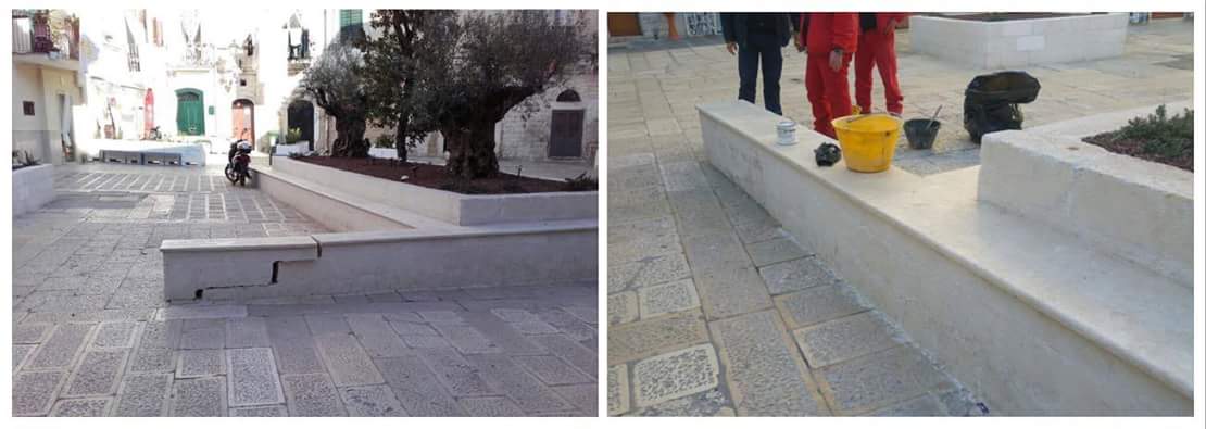 In fondo non credo sia colpa loro se un cretino ha probabilmente deciso di scorrazzare con la propria auto in una piazza pedonale”. Da qui la promessa del sindaco. “Non lasceremo che la città venga “scassata” per colpa dei cretini, perché i baresi non se lo meritano. Non è giusto. Tutti devono sapere – aggiunge- che questo è un intervento straordinario che significa una spesa straordinaria, che ricade su tutti noi. Oggi si è trattato di un semplice muretto, ma in molti altri luoghi della città, aggiustare strutture vandalizzate significa, fare progetti, pubblicare gare, affidare e solo dopo intervenire. Immaginate quanto tempo e quanti soldi si sprecano! Per voi tutto questo è giusto? Per me no. Noi questa città dovremmo amarla senza che qualcuno ci costringa a farlo”.