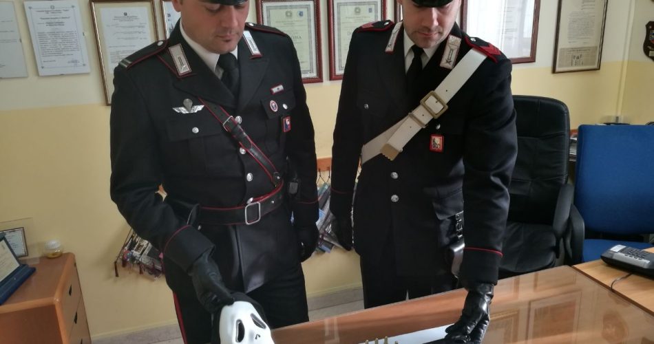 Al via le indagini dei carabinieri che risalgono al telefono utilizzato per la rapina. Durante una perquisizione i militari trovano una pistola giocattolo priva del tappo rosso, diversi proiettili calibro 9 per arma semiautomatica ed una maschera “anonymous”. Scattano quindi le manette.