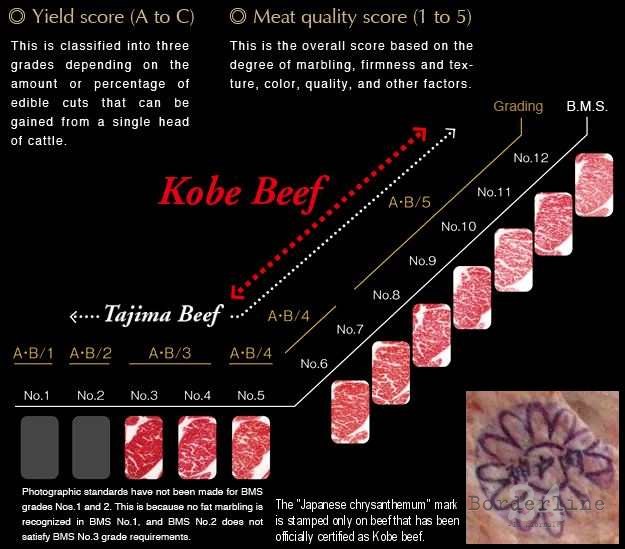Kobe è un marchio registrato pertanto deve avere delle specifiche ben definite: oltre al peso, intorno ai 470 chilogrammi, deve essere un bovino appartenente alla razza Tajima, nato e allevato a Hyogo, deve essere una scottona, un manzo o un bue e macellato nel mattatoio di Kobe, e il livello di marezzatura non deve essere inferiore al 6° livello della scala. Il costo medio al chilo di questa prelibatezza si aggira intorno ai 350 euro al chilo, ma a seconda del grado di marezzatura può arrivare anche a costare oltre 1000 euro.
