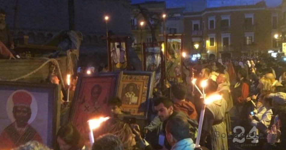 La festa padronale 2017 continua con la messinscena della traslazione delle reliquie (1087) diretta da Elisa Barucchieri. Oltre 500 figuranti – suonatori di tamburi, bambini, nobili, religiosi, cavalieri, popolani, cavalieri – hanno partecipato con devozione alla raffigurazione di sei “Quadri” (episodi o miracoli del santo) fino all’arrivo della Caravella in Basilica a Bari Vecchia.