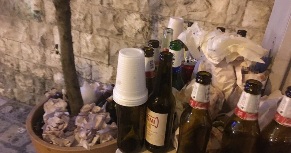 Cumuli di carte e avanzi di focaccia accanto a contenitori strapieni di rifiuti. Le immancabili bottiglie di birra abbandonate in ogni ripiano disponibile e perfino nei vasi. Si tratta della tradizione (peggiore) che ogni anno si ripete in concomitanza con i festeggiamenti di San Nicola: una parte delle persone di passaggio da Bari Vecchia “dimentica” di smaltire correttamente i rifiuti dopo aver consumato.