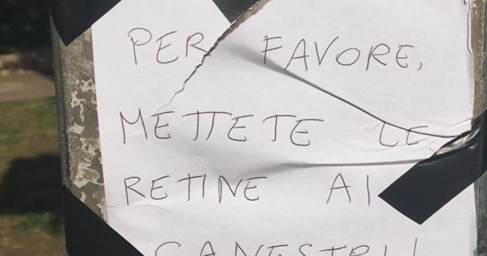Dopo le continue sollecitazioni e le collette degli amanti del basket per riparare i canestri del campo all’interno di Largo Due Giugno ecco un altro appello. Questa volta scritto su un foglio di carta: “Per favore mettete le retine ai canestri”. Come già segnalato da Bordeline24 i palyground della città versano in pessime condizioni, tra atti vandalici e incuria.