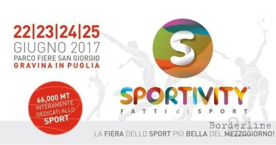 Dal 22 al 25 giugno la città di Gravina in Puglia ospiterà “Sportivity”, la prima Fiera interamente dedicata allo sport, al divertimento e al benessere. La kermesse – la più grande mai realizzata al Sud Italia – si svilupperà su un’area di oltre 60 mila metri quadri, caratterizzati da attrazioni e da eventi unici, con obiettivo di soddisfare la voglia di sport di tutti.