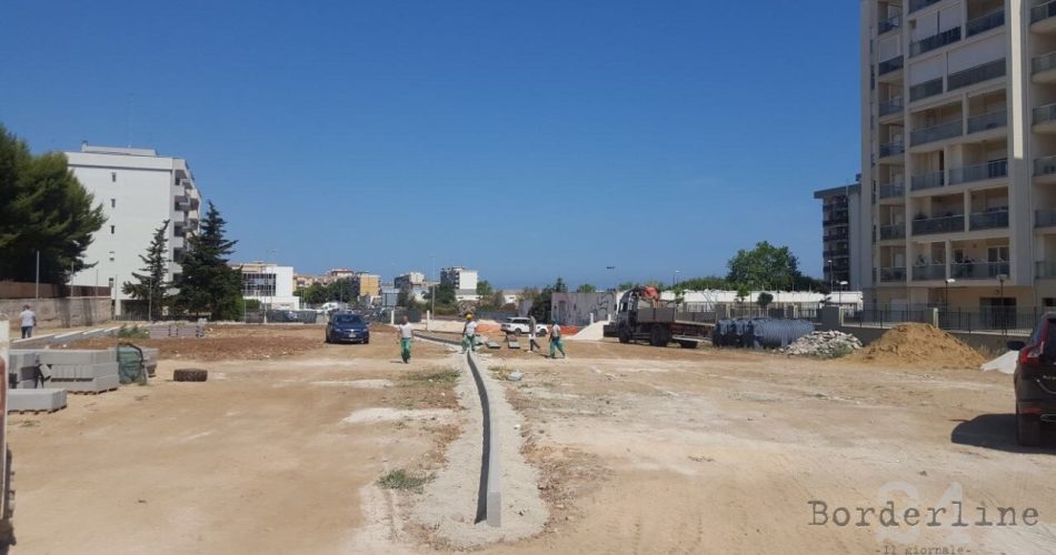 Gli edifici sono stati abbattuti e inizia a comparire la tracciatura dei viali: il parco da 18mila metri quadri che nascerà tra via Suglia, via Toscanini e via Troisi – al rione Japigia – comincia a prendere forma.