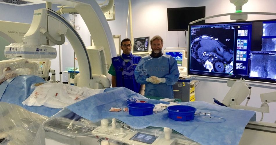 “La tecnica consiste nell’attuazione di un trattamento loco-regionale mini-invasivo di tipo ‘combinato’, fisico e chimico, per così dire, chirurgico e medico- spiega il dottor Gadaleta- In un primo tempo, nel corso di un intervento radio-chirurgico mini-invasivo (accesso percutaneo di 2 millimetri), eseguito in sala operatoria angiografica con l’ausilio di angiografia, TAC ed Eco, il chirurgo radio-oncologo, dopo una meticolosa e lunga identificazione radiologica, ‘a cielo coperto’, di tutte le numerose piccole arterie che giungono al pancreas e al suo tumore dagli organi vicini, procede dall’interno dei vasi alla loro ‘chiusura’ con emboli metallici e colla, lasciando ‘aperta’ una sola via di accesso in corrispondenza della coda del pancreas: qui viene piazzato un cateterino per poter procedere al secondo tempo terapeutico. A questo punto, attraverso il cateterino, si procede a una lenta e prolungata somministrazione di chemioterapico. In questo modo, tutto il pancreas, compreso il tumore e le sue diramazioni che abbracciano i vasi sanguiferi e i visceri addominali vicini (duodeno, vena porta, arteria epatica e splenica) sono lentamente e continuamente perfusi con piccole ma ininterrotte quantità di chemioterapico che, un po’ alla volta, fa ‘restringere’ il tumore, fino a renderlo trattabile ulteriormente con altre modalità (elettroporazione e/o chirurgia tradizionale)”.