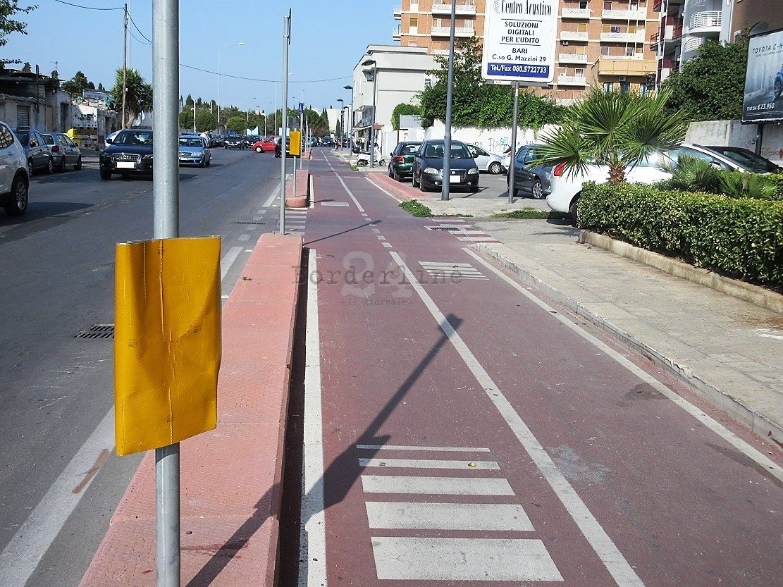 Bari, vandali e automobilisti “distratti” sulla pista ciclabile del Libertà