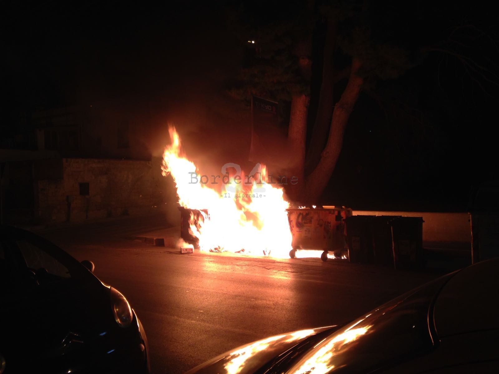 Bari, vandali in azione in corso De Gasperi: a fuoco i bidoni
