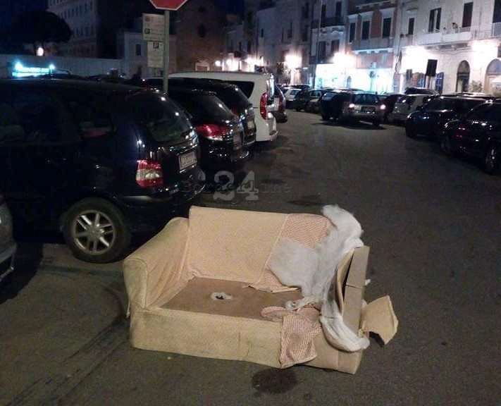 “Da tre giorni questo divano fa bella mostra di sé abbandonato in largo S. Chiara davanti al Castello, nonostante le tante telecamere che dovrebbero aver registrato l’incivile”. La denuncia è del comitato Parco del Castello che pubblica su Facebook la foto dell’ingombrante abbandonato tra le auto in sosta a due passi da Cattedrale e Castello.
