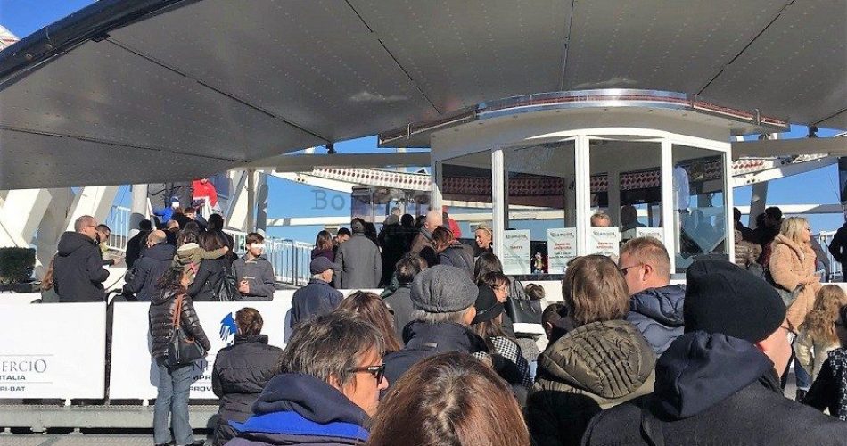 La ruota panoramica “Diamond” piace ai baresi. In 24 ore sono stati staccati oltre mille biglietti interi (da 9 euro): il dato del progressivo riportato sul ticket per adulti è passato da 703 (7/12 alle 11.12) a 1839 (8/12 alle 11.48). La giornata di sole in concomitanza con la festa religiosa dell’Immacolata ha convinto centinaia di famiglie e gruppi a salire a 55 metri d’altezza per apprezzare il paesaggio di Bari.