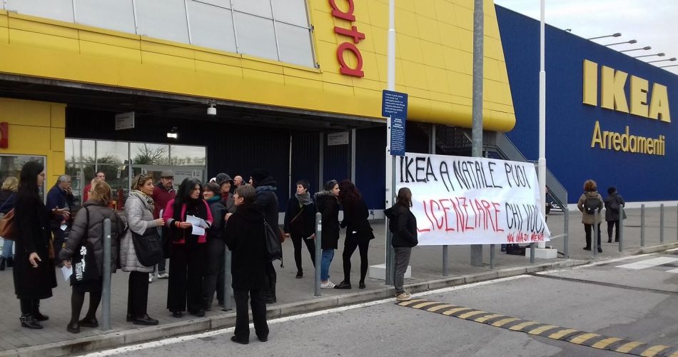 “A Bari, Ikea con la collaborazione dell’amministrazione comunale, in un’abile operazione di greenwashing dal nome “Ikea Loves Bari”, si preoccupa di ‘riqualificare’ Largo Albicocca a Bari Vecchia snaturando di fatto la piazza con delle “belle” decorazioni svedesi. Sembra – scrivono gli organizzatori della manifestazione – non mostrare invece alcuna preoccupazione nei riguardi di Francesca, Marica e Claudio, nel momento in cui deve dare loro il ben servito. È un problema di algoritmo, che controlla e stabilisce turni e pause delle lavoratrici e dei lavoratori, o di mero riordino aziendale.