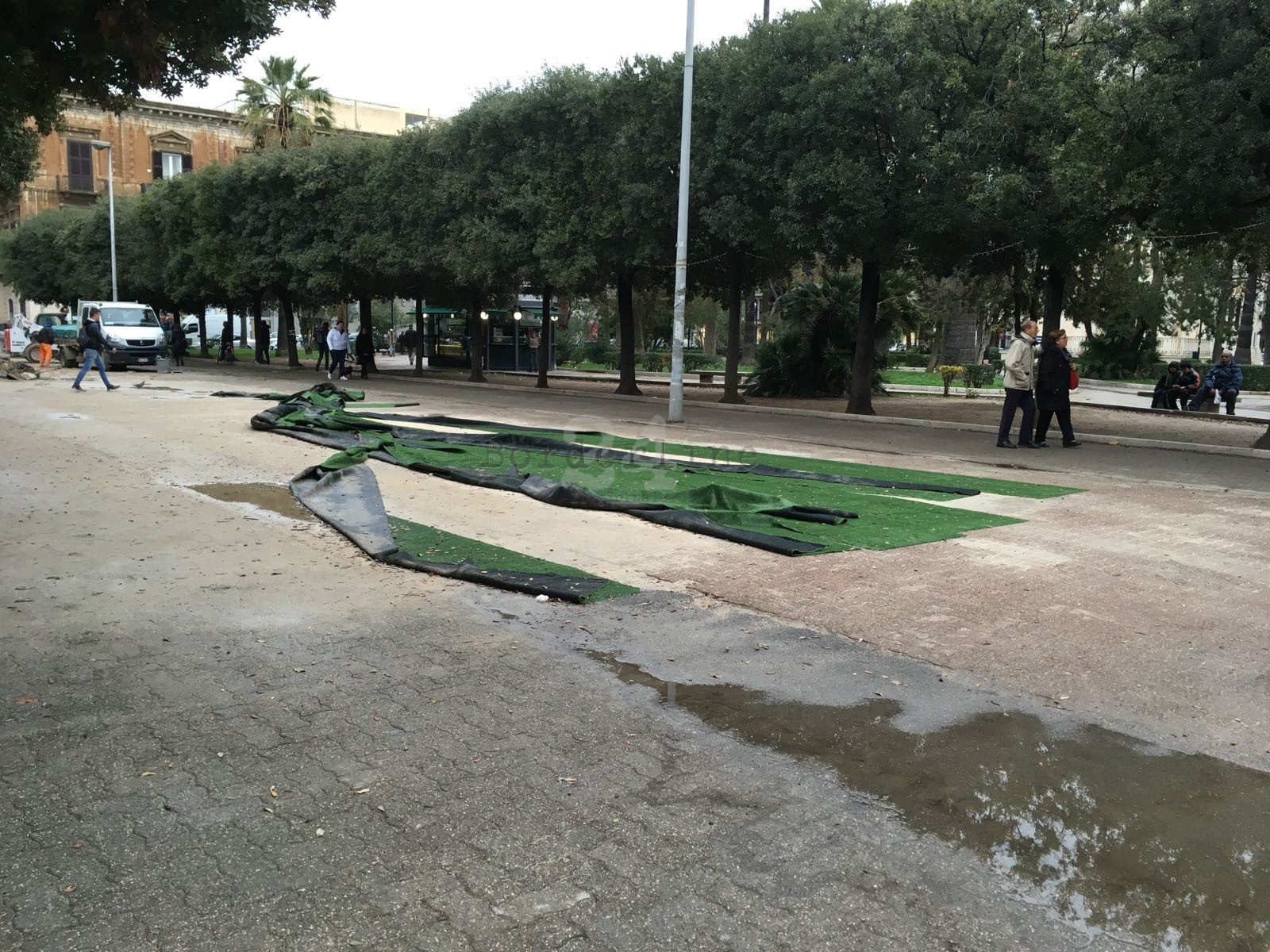 Lì dove un tempo c’erano i vasconi ora c’è una pavimentazione dissestata che quando piove si trasforma in un pantano, con buche, dislivelli pieni di acqua. Si presenta così piazza Umberto, in particolare la strada di accesso al villaggio di Babbo Natale. Oggi su alcuni punti sono stati sistemati dei tappeti verdi, ma impossibile coprire tutta la pavimentazione dissestata. Con inevitabili disagi per chi questa mattina si è diretto verso la casa di Babbo Natale per assistere agli spettacoli e fare consegnare ai propri bimbi la letterina.