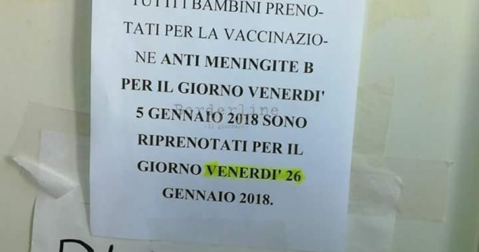 Casi vengono segnalati a Bisceglie, a Bari, Modugno: in particolare mancano i vaccini contro la meningite B, così chi aveva prenotato l’appuntamento con il medico nei giorni scorsi è stato rimandato a casa e invitato a tornare tra fine gennaio e i primi giorni di febbraio. La nuova legge sull’obbligo vaccinale ha aumentanto esponenzialmente il numero di bambini da vaccinare e, per questo motivo, le scorte acquistate sono risultate insufficienti e le aziende produttrici sono in ritardo nelle consegne.