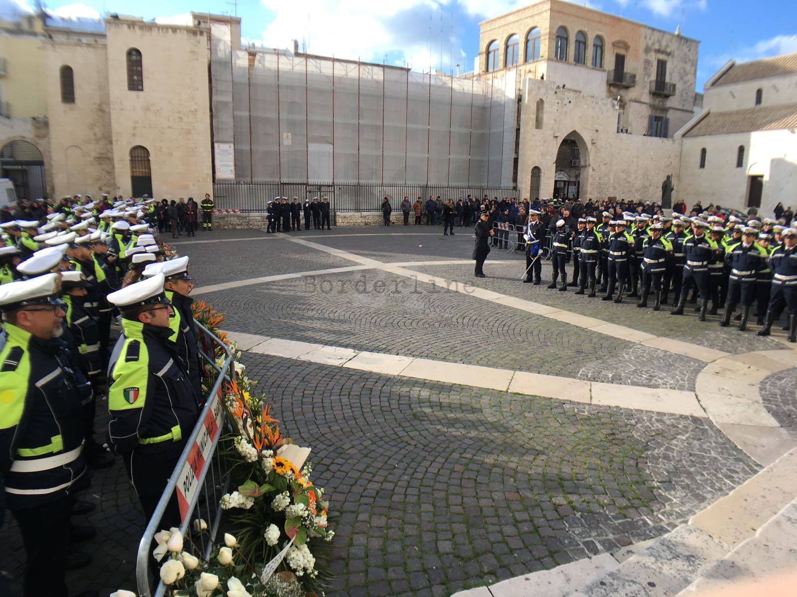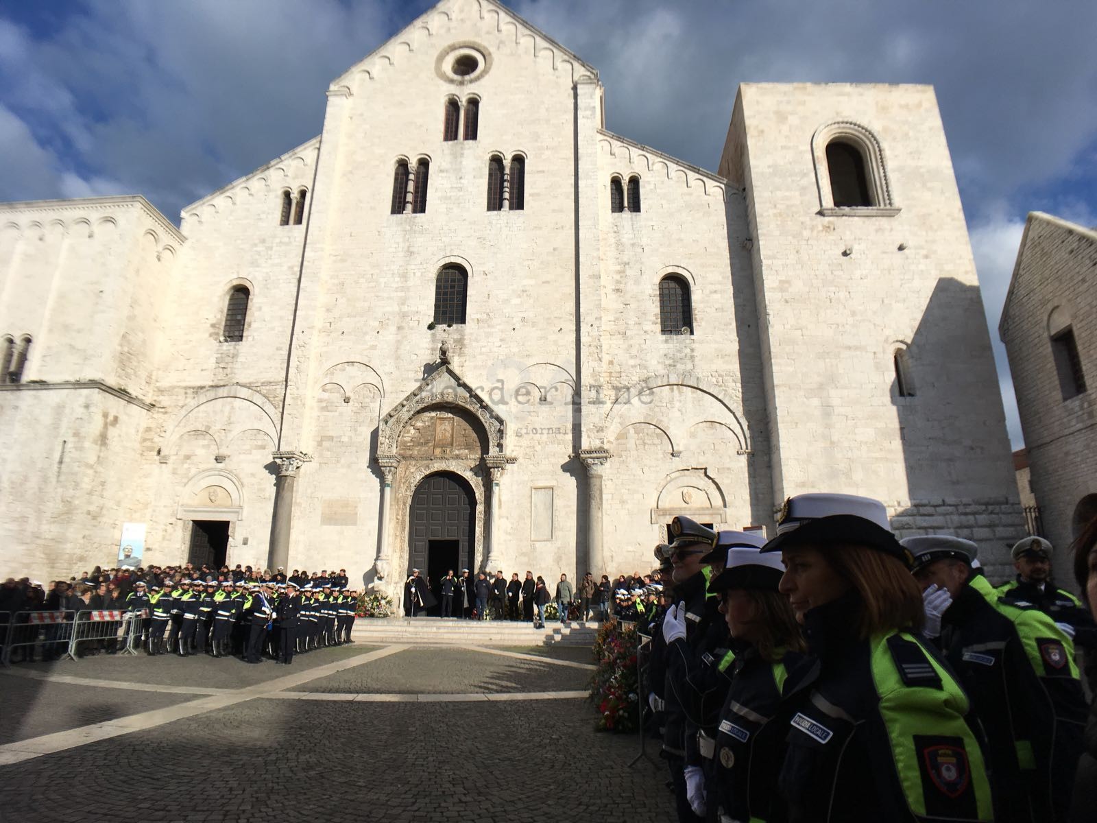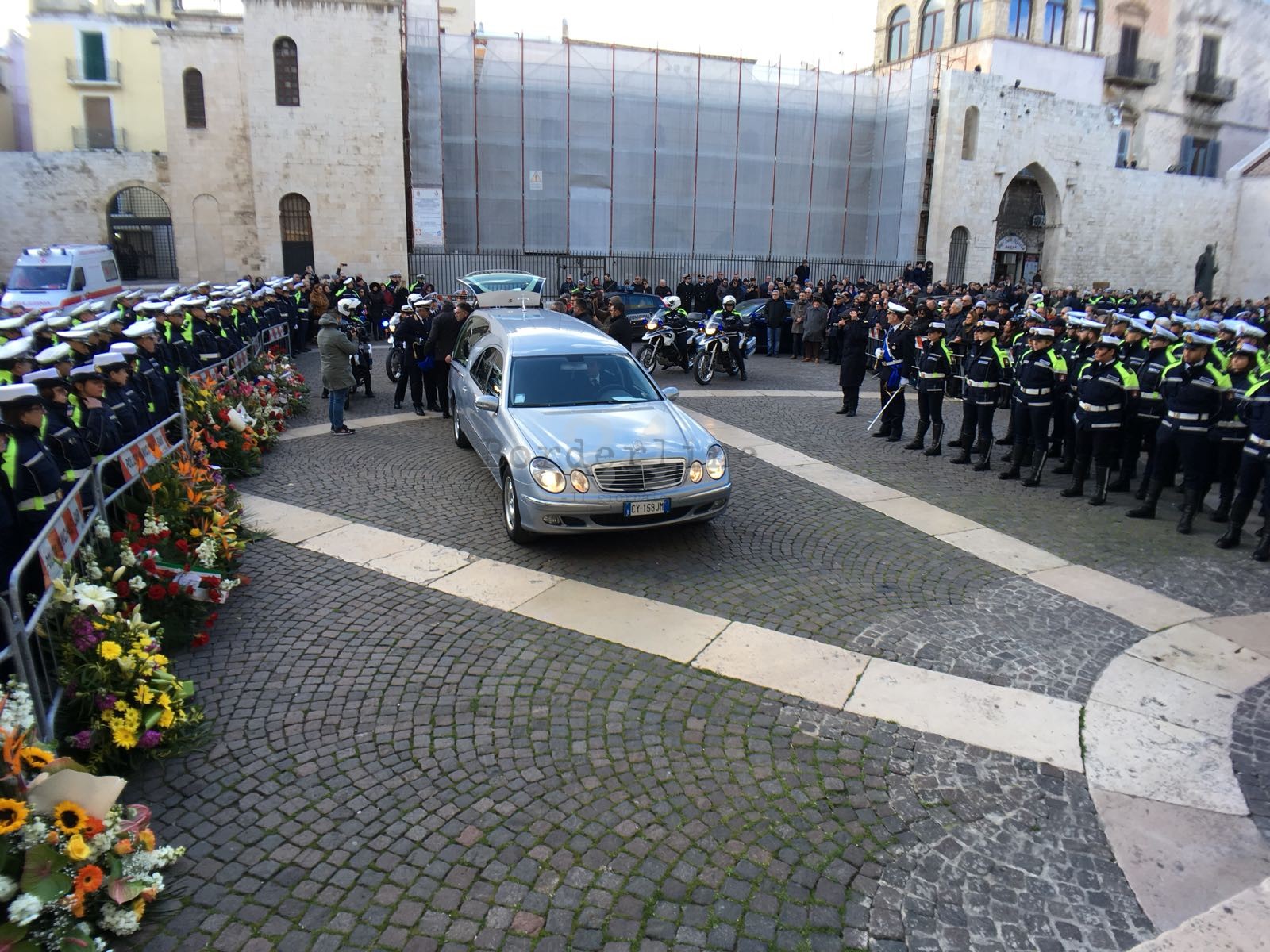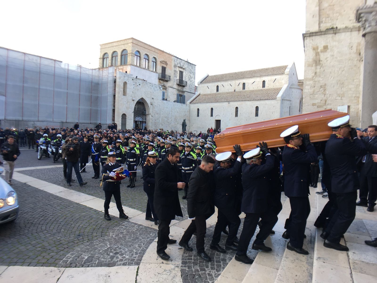 Prima il suono delle trombe, poi il silenzio e l’intero corpo dei vigili schierato: così è cominciato l’addio della città al comandante Nicola Marzulli, scomparso ieri all’improvviso all’età di 66 anni, colpito da un malore improvviso. Un uomo che lascia un grande vuoto in una città alla quale ha dato davvero tanto. E che oggi, in Basilica, si è data appuntamento per l’ultimo saluto.