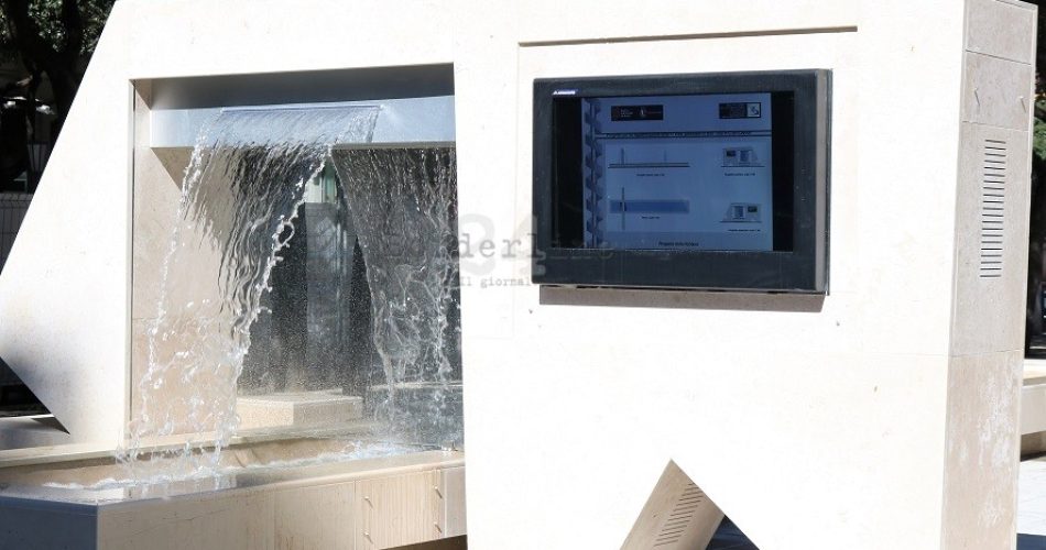 Si avvicina l’inaugurazione della piazzetta di corso Cavour. Dopo l’installazione delle panchine lo scorso 13 febbraio, da questa mattina è attiva l’imponente fontana centrale con due cascate e un getto d’acqua verso l’alto. Il design scelto dallo studio di ingegneria e architettura Sibilano, per il progetto di restyling finanziato dalla Banca Popolare di Bari, è in stile moderno. Oltre alla fontana, gli arredi urbani comprendono panchine in marmo con schienale ondulato in legno, cubi singoli come sedute aggiuntive disposti in modo simmetrico, aree verdi e un gioco della campana sul selciato.