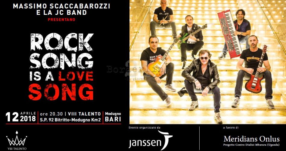 Musica e beneficenza si incontrano al concerto Rock Song is a Love Song in programma giovedì 12 aprile a partire dalle 20.30 al VIII Talento, sulla S.P.92 al km.2 della Bitritto/Modugno.