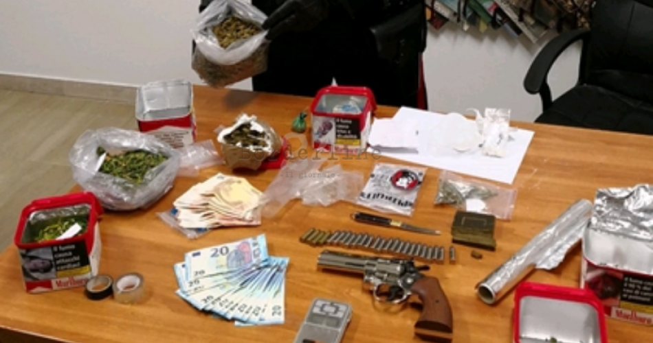 Sottoposto a perquisizione personale, estesa successivamente anche al domicilio, è stato trovato in possesso non solo di 500 grammi di marijuana e 60 grammi di hashish, ma anche di una pistola scacciacani modificata, perfettamente funzionante con relativo munizionamento.