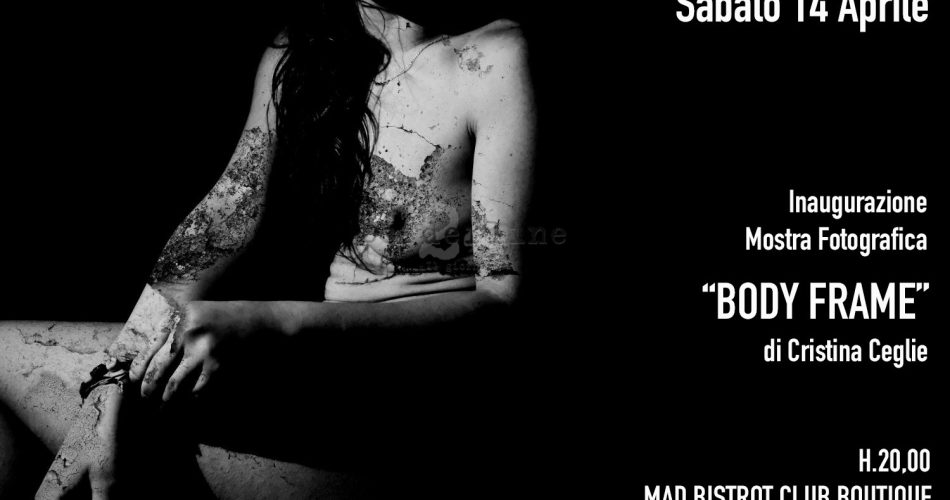 “Body frame è un progetto fotografico basato sul concetto del tempo e la sua rappresentazione attraverso il corpo umano e la materia che lo circonda. La fusione dell’umano e di ciò che è materiale, distruttibile. Il tempo passa e si sgretola. Come lui anche la materia ed il corpo. Il corpo nasce puro ma viene usurato dalla crescita, dal tempo e dalle cicatrici. La ricerca fotografica parte dal concetto centrale del progetto, il trascorrere del tempo, per poi ricercare particolari effetti di luce che facciano risaltare i corpi bianchi dei soggetti fotografati. Essi risultano così quasi marmorei, scolpiti. Altorilievi che emergono dal buio del fondo dell’immagine. Ad ogni corpo puro è sovrapposto un pattern di frammenti – muri, strade, superfici – che il tempo ha consumato. Ognuno di questi raffigura le cicatrici esteriori e interiori che segnano corpo e anima durante l’esistenza umana. Così l’essere da puro, diventa frammentato fino al suo totale decadimento”, scrive Cristina Ceglie.