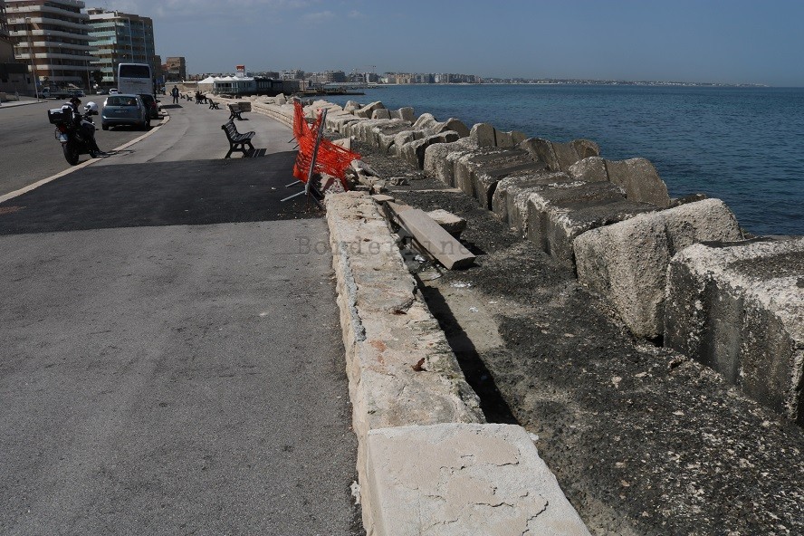 Lastre in marmo divelte, mattoni accatastati sul selciato, pavimento a pezzi. Nulla è cambiato sotto il faro di San Cataldo dalla notte del 24 ottobre, quando la perturbazione “il figlio di Ofelia” ha provocato danni per 25 mila euro su tutta la costa di Bari con venti fino a 60 nodi e porto in tilt. Il Comune aveva annunciato interventi di bonifica urgenti (entro la fine dello scorso anno) ma ormai il “cantiere” è fermo da mesi, precisamente da 170 giorni. “Ho sollecitato più volte l’avvio delle operazioni”, ha spiegato Giuseppe Galasso, assessore ai Lavori pubblici.