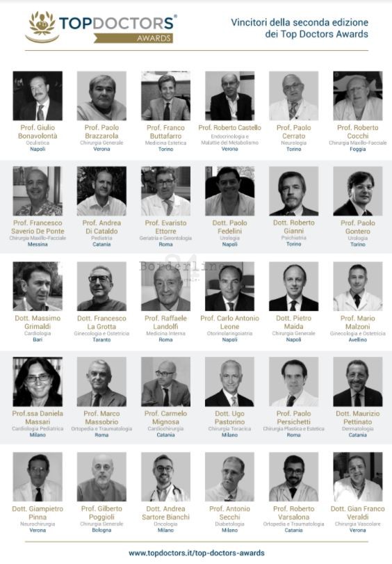 Top Doctors® (www.topdoctors.it), la piattaforma online che seleziona e mette a disposizione degli utenti un panel formato dai migliori medici specialisti, centri e cliniche privati di livello internazionale, ha infatti annunciato i 30 vincitori del prestigioso riconoscimento – che l’azienda assegna già da decenni negli Stati Uniti – premiando i professionisti della sanità presenti sulla piattaforma Top Doctors giudicati più meritevoli dai loro stessi colleghi. Questi ultimi sono chiamati a indicare gli specialisti a cui affiderebbero la propria salute o quella di un familiare. Questa edizione premia quindi gli specialisti che, nel corso del 2017, hanno raccolto più preferenze.