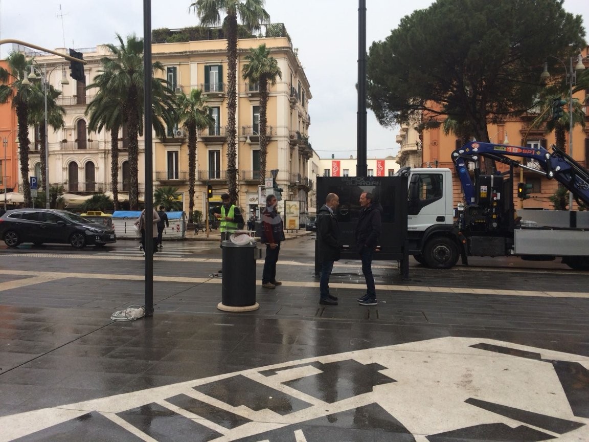 Sono già state installate  tre torri telescopiche, ognuna dotata di più telecamere, capaci di raggiungere un’ altezza di 14 metri posizionate in corso Vittorio Emanuele incrocio con via Sparano, in piazza Ferrarese e in largo Giannella nei pressi della ruota panoramica.
