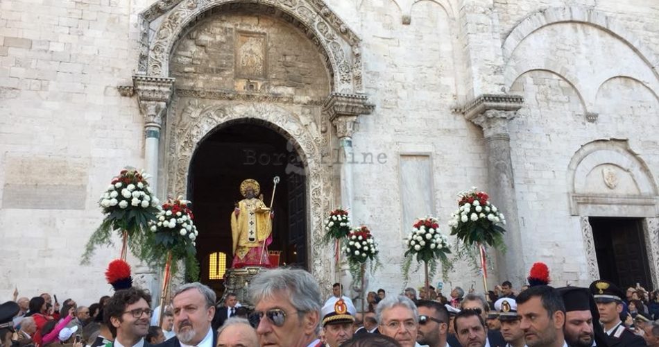 Oltre 10mila pellegrini sono arrivati all’alba questa mattina per la festa di San Nicola. La statua è uscita poco fa dalla Basilica, ha percorso i vicoli del centro storico per raggiungere il molo di San Nicola. Qui dopo la messa ci sarà il tradizionale imbarco in mare fino a sera, quando la stessa statua rientrerà per raggiungere in una piccola processione piazza del Ferrarese. Quella di oggi è comunemente la giornata dedicata ai pellegrini: arrivano da tutto il Sud. Alcuni, come quelli di San Salvo, sono persino partiti il 30 aprile a piedi per raggiungere Bari in tempo per il Santo.