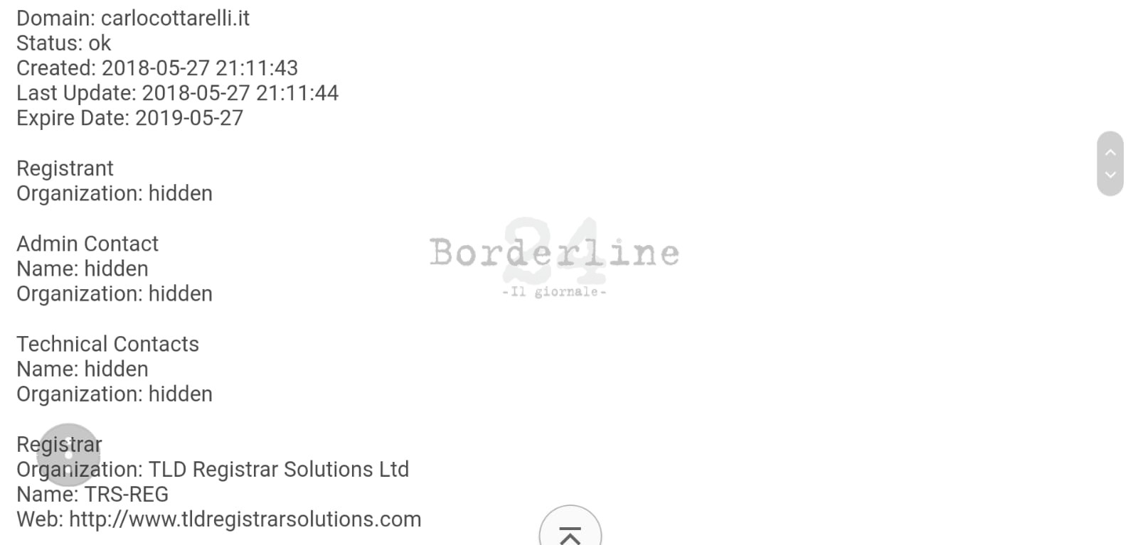 Prima ancora della convocazione al Colle di Carlo Cottarelli per l’eventuale nomina a presidente del Consiglio, c’è già il primo giallo. Il dominio .it del convocato risulta già registrato da soggetti secretati. Tale attività risulta illegale a livello nazionale, in quanto, non è consentita la copertura dei dati di intestazione dei domini .it. Altro aspetto assolutamente ambiguo risulta essere la registrazione antecedente alla diffusione di tale informazione. Quaranta minuti prima che gli italiani fossero informati della convocazione. Ad oggi mai avvenuto niente di simile.