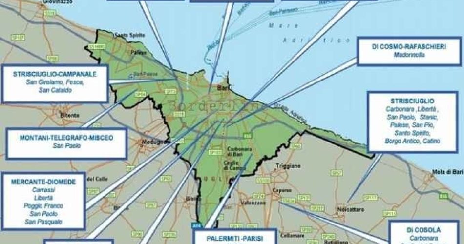 - individuare le articolazioni e i relativi componenti operanti in Bari, con riferimento ai quartieri “Libertà”, “Carrassi-San Pasquale”, nei comuni baresi di Bitonto, Triggiano-Adelfia, Altamura-Gravina in Puglia;