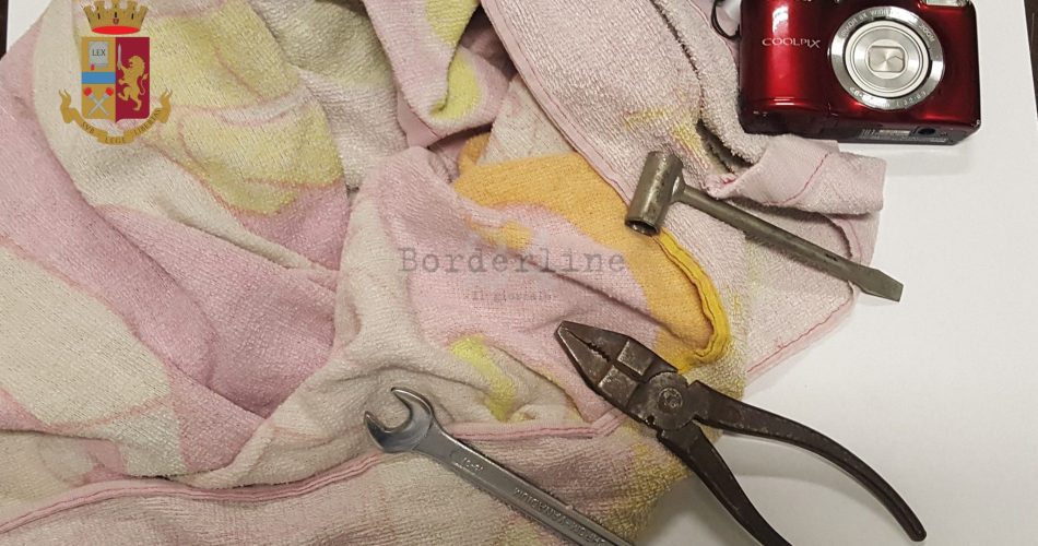 La successiva perquisizione, effettuata all’auto e ai due denunciati, ha premesso di rinvenire alcuni strumenti atti allo scasso e una fotocamera, oggetto di ulteriori accertamenti tecnici, il tutto avvolto in un asciugamano.