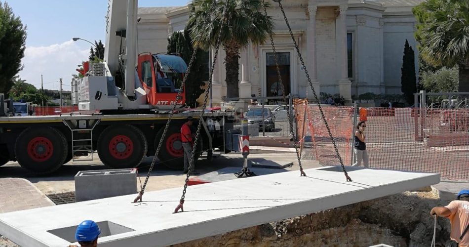 Questa mattina invece sono state consegnate e installate le grandi vasche di trattamento delle acque pluviali, allocandole negli scavi realizzati nei pressi del santuario di Santa Fara. Le vasche serviranno a realizzare i trattamenti di disabbiatura e disoleatura della acque, passaggi propedeutici al successivo smistamento in ulteriori due pozzi anidri che saranno realizzati nei prossimi giorni proprio nelle vicinanze delle vasche per smaltire le acque nel sottosuolo, in modo che le acque, copiose, che oggi ruscellano lungo via Torre Tresca riversandosi nel sottopasso, possano essere intercettate e smaltite prima che giungano su via Generale Bellomo. Sempre nei prossimi giorni verranno anche installate le tre caditoie del tipo a nastro, che interesseranno strada Torre Tresca per l’intera larghezza stradale, che serviranno ad intercettare l’acqua che copiosamente, specie in occasione delle piogge più intense, scorre superficialmente lungo strada che, occorre ricordare, è una strada con una lunga estensione ed è completamente prima di fogna bianca.