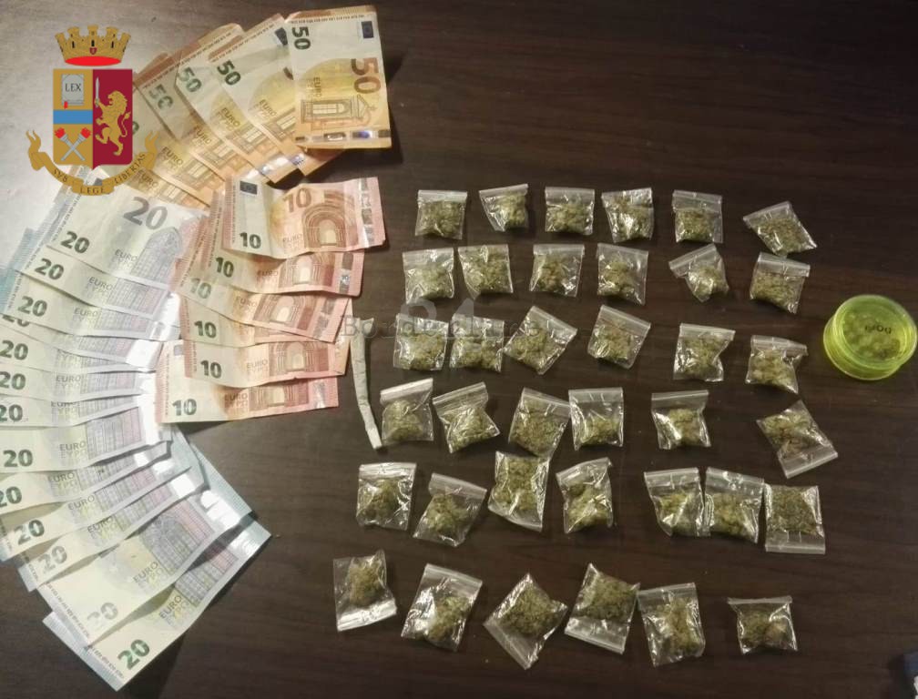 L’attività ha consentito di rinvenire e sequestrare 37 bustine di marijuana, per un peso complessivo di circa 42 grammi, un trita erba in plastica, la somma in contanti di 670,00 euro e due telefoni cellulari.