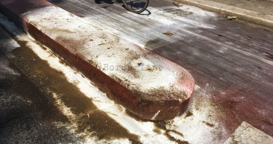 Non si è accorto della presenza del cordolo della pista ciclabile in corso Mazzini e lo ha preso in pieno con la sua auto.