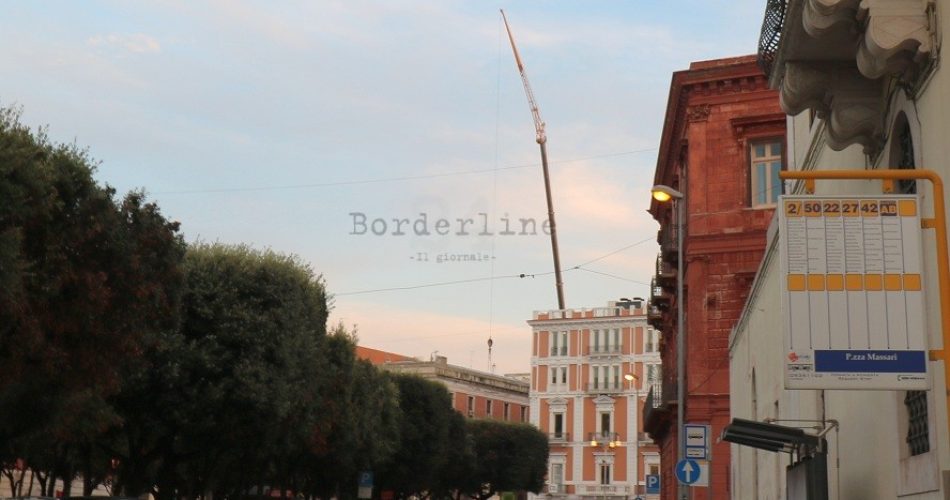 Un gru svetta tra i palazzi del quartiere murattiano a Bari. Sono iniziati i lavori di adeguamento degli impianti del teatro Piccinni e da poche ore è stato chiuso al traffico un tratto di strada per entrambi i sensi di marcia del tratto di via Piccinni, compreso tra via Andrea da Bari e via Cairoli.