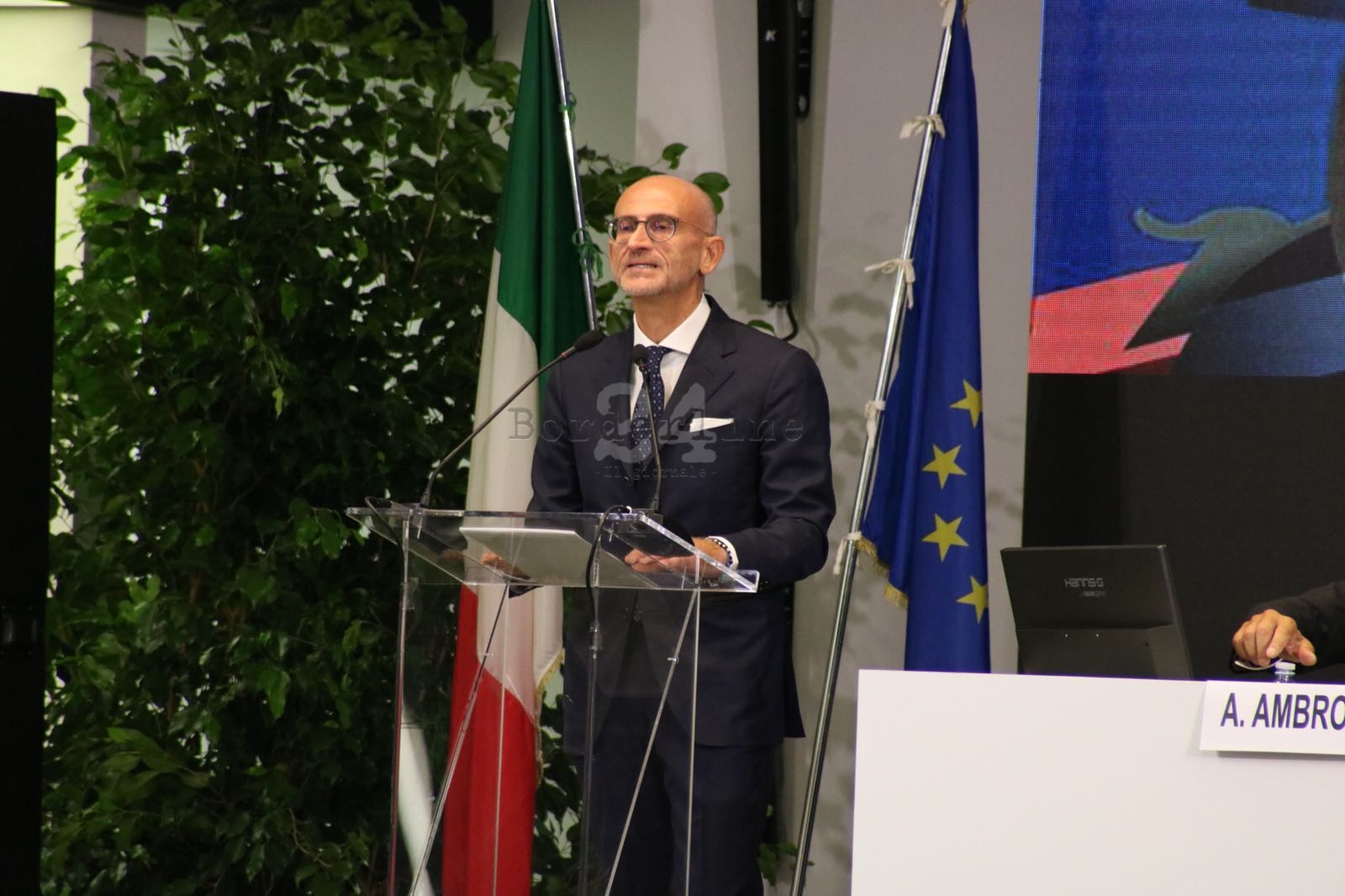 Subito dopo è  intervenuto Sandro Ambrosi, presidente della Nuova Fiera del Levante:  “Quest’anno abbiamo l’orgoglio di inaugurare la Fiera con un presidente del Consiglio pugliese  – ha detto – questo è  il primo polo fieristico del Sud. La Fiera qui è vissuta da tutti come un bene di famiglia, è il cuor – business di Bari, fa nulla che non sia perfetta, per tutti noi in questa settimana di settembre è come tornare alle origini. Stiamo lavorando per ritagliare alla Fiera un ruolo nel panorama nazionale e internazionale. Stiamo lavorando affinchè la Fiera diventi un polo di attrazione aperto tutto l’anno, di identità e offerta del Mediterraneo”.