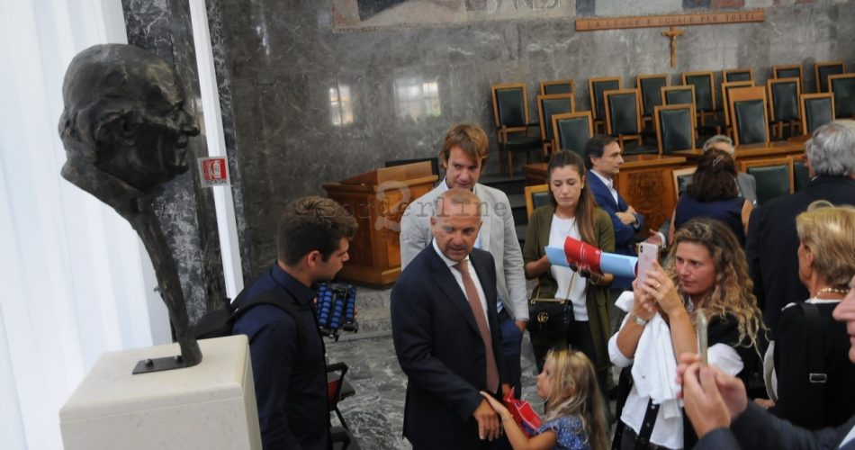 Un busto in ricordo di Aurelio Gironda Veraldi, “quello che è stato un grandissimo uomo e un grandissimo avvocato”. Con una cerimonia nel tribunale di piazza De Nicola, i maggiori rappresentanti del mondo forense di Bari e della Puglia hanno voluto ricordare l’avvocato barese. “Un regalo enorme che noi abbiamo fatto a mio padre e che mio padre ha fatto a noi – dice il figlio Vittorio Gironda Veraldi, anche lui noto avvocato – che racchiude la sua intera esperienza professionale e la sua grande umanità. Oggi rivive in mezzo a noi, in quello che è stato il suo mondo”.