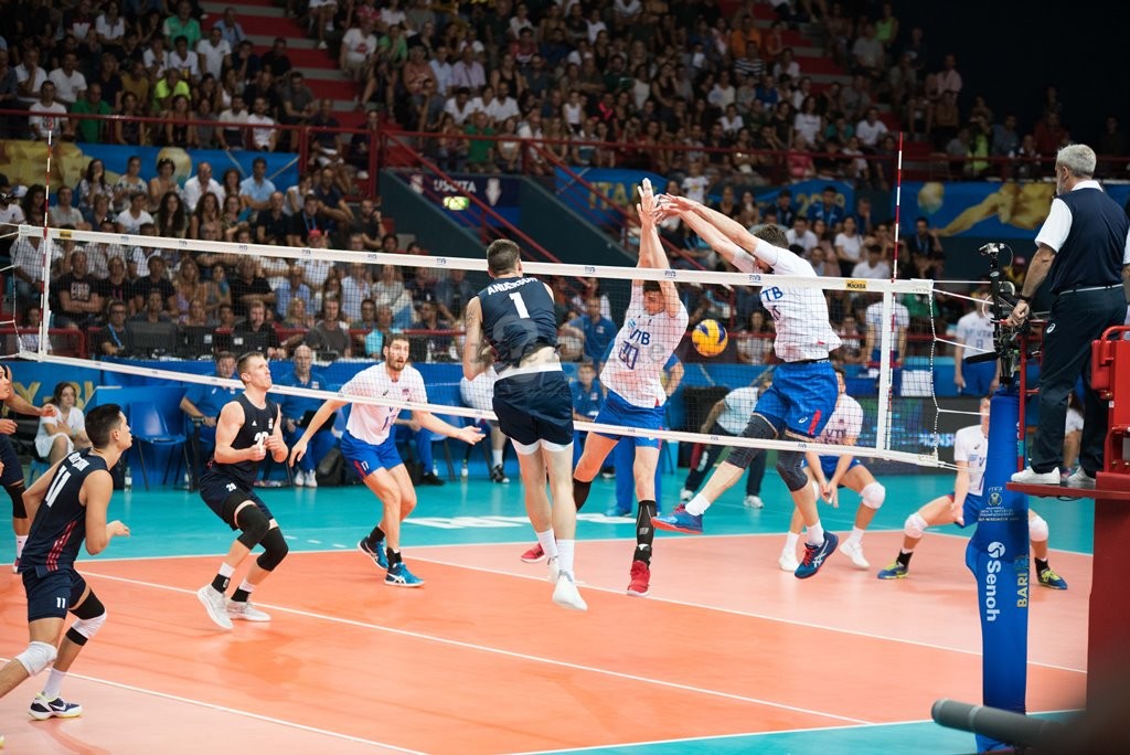 Spettacolo in campo, con il successo per 3-1 degli Stati Uniti sulla Russia, nella sfida clou del “girone di ferro” dei Mondiali. Ma spettacolo anche fuori dal campo, con 5mila appassionati assiepati sulle tribune del PalaFlorio di Bari, a tifare e a cantare. La febbre del sabato sera è stata febbre di volley, nel capoluogo ii regione, dove si stanno dando battaglia le squadre del gruppo C. A fare da antipasto alla super sfida tra Stati Uniti e Russia è stata la sfida tra Serbia e Tunisia conclusa con la vittoria per 3-1 degli uomini di Nikola Grbic dopo aver faticato nel primo set conquistato dai ragazzi di Antonio Giacobbe.